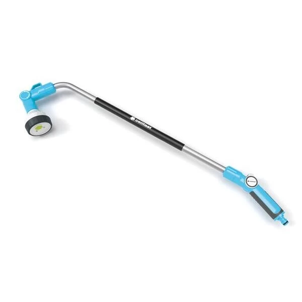 Handige, multifunctionele, extra lange tuinslangsproeier met vier sproeistanden. Deze lans met ergonomische handgreep is een handige metgezel voor het wassen van jouw auto of het water geven in de tuinkas of moestuin.