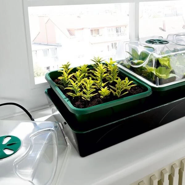 Deze elektrische vensterbankkas is voorzien van een verwarmde bodem om succesvol te kunnen stekken en zaaien. Voorzien van 3 afzonderlijke kweekkasjes.