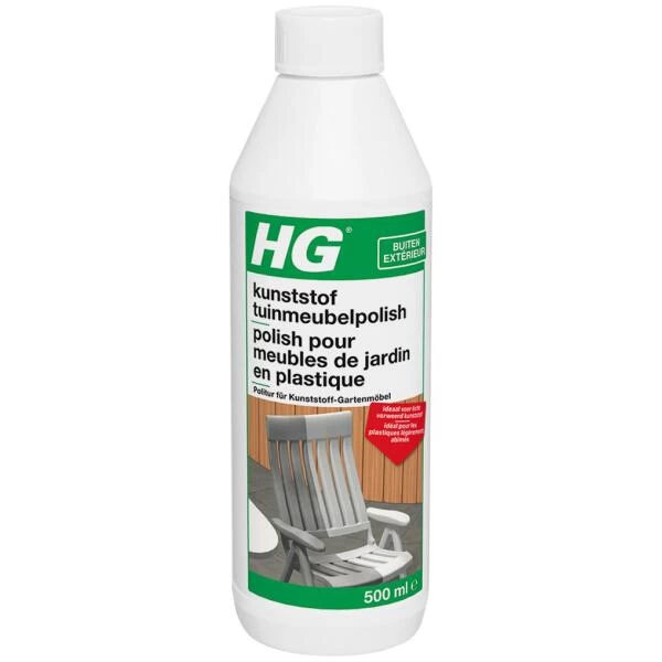 HG kunststof tuinmeubelpolish laat licht verweerde of sterk vervuilde kunststof tuinmeubels weer glanzen als nieuw.