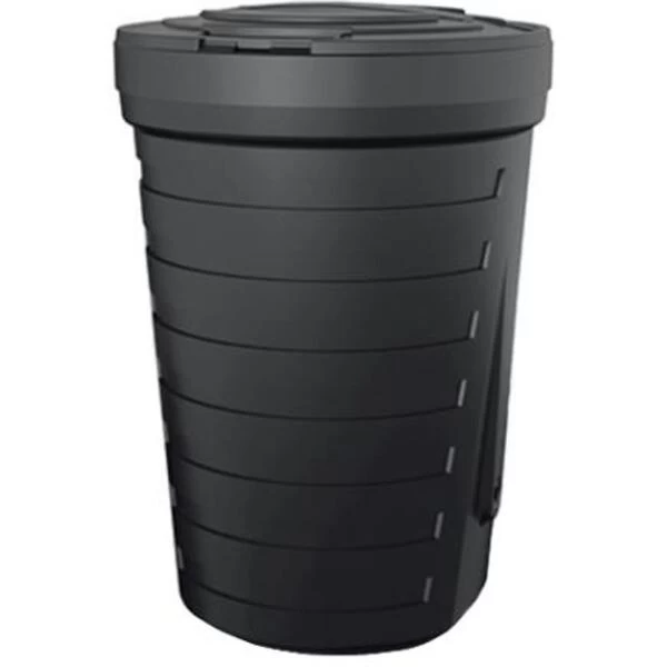 Deze stijlvolle en strakke regenton heeft twee aansluitingen: één voor een kraantje en één voor de tuinslang. In beide gaten zit een stop. De bovenzijde van de zwarte ton is volledig open en afsluitbaar met een groot deksel waardoor het steeds mogelijk is water te scheppen met een emmer of een gieter.