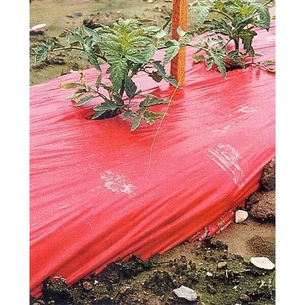 De weerkaatsing van het licht op de rode folie doet de fotosynthese toenemen en zorgt voor een betere groei van de planten. De rode kleur van deze mulchfolie zorgt voor hogere opbrengsten bij allerlei gewassen zoals o.a. tomaten en aardbeien.